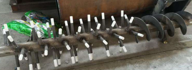 3.加大出料口或加長(zhǎng)料槽端部,以解決排料不暢或來(lái)不及排料的問(wèn)題。同時(shí),還可在出料口料槽端部安裝一小段反旋向葉片,以防端部堵料。